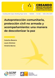 Bezerra, Catarina, Laura Jiménez, Victória Barros, Autoprotección comunitaria, protección civil no armada y acompañamiento: una manera de descolonizar la paz, Creating Safer Space Working Paper Series 3(3), 2025